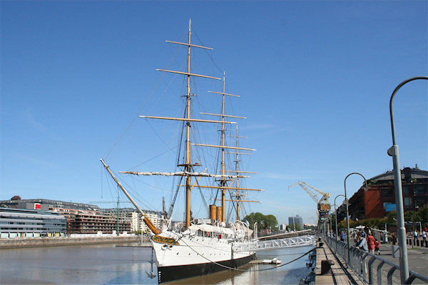 In the Darsena the Fregata Sarmiento, wich sailed arround the world 40 times between1899 and 1938.