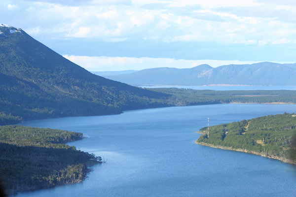Chile from Ushuaia, Argentina. 150 miles long and three miles wide.