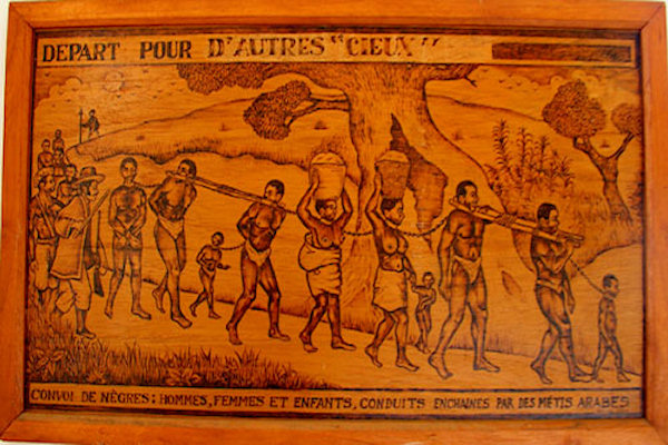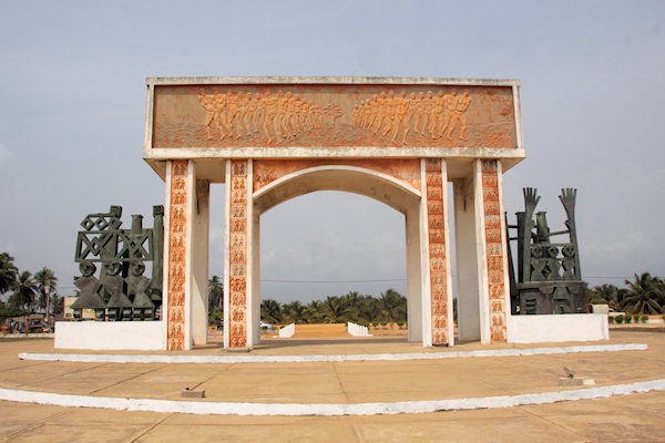 of slaves traveled on their way to board the slaving ships for the New World. Along the road are large